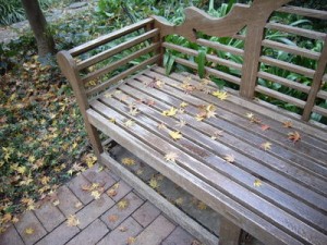 座ろうとすると、ベンチにモミジが沢山落ちていました。