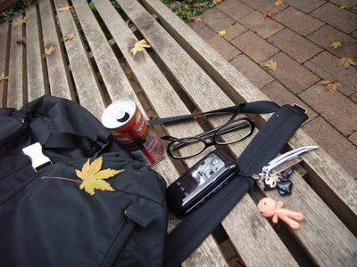 そっと、バックに落ちたモミジは、