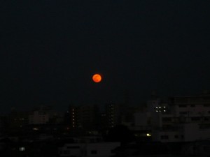 ※昨日の満月、紅く輝く不思議な月を